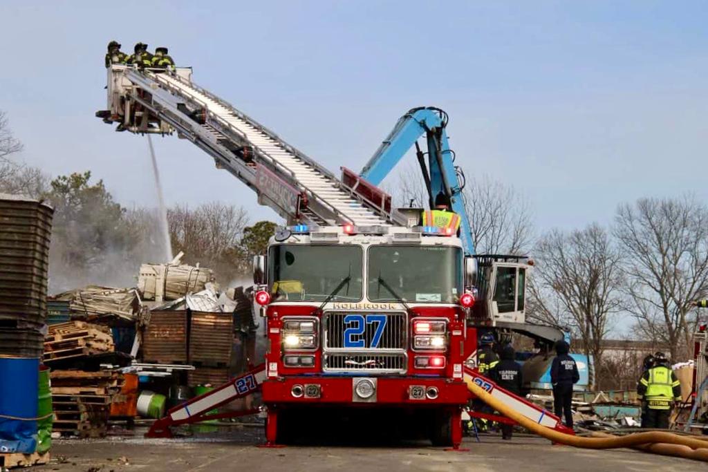 At 1524 Holbrook was activated for smoke in the area of Lincoln Ave and Church street. Arriving units located the source of the fire being piles of scrap burning in Chauncey Metal Processors located at 1111 Lincoln Ave. Two handlines and multiple master streams were immediately put into operation to prevent further spread to additional nearby scrap. Rehab Unit responded for prolonged alarm and Fire Marshall requested and responded. Units operated and were on scene for over two hours. There were no reported injuries as EMS stood buy entire call. Scene released to Fire Marshall at 1734 hrs.